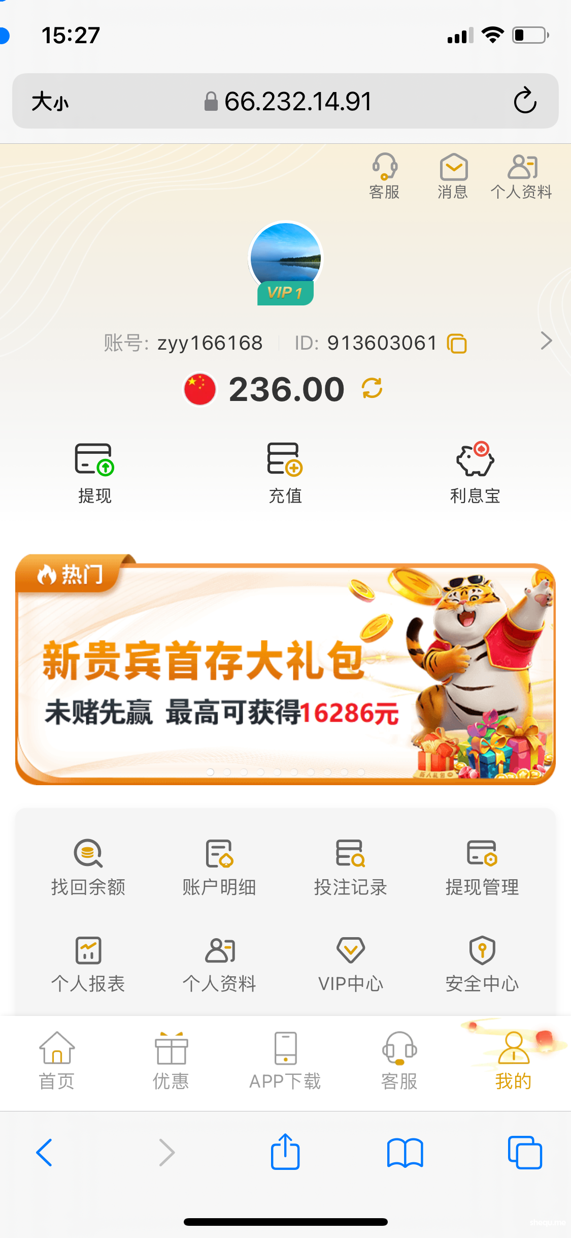 今天接到电话说注册就送彩金,结果找了在线客服,在线客服让下载旺旺商聊加专员,专员说首次盈利后提现就派发186彩金,我充值200提现236,去找专员和在线客服,一直在打太极,还说要二存,大家注意这个黑台子。