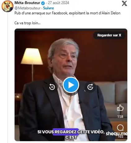 阿兰·德龙的去世对这些骗子团伙来说是一个绝佳的机会!他们了解他的生活,他们知道该说什么才能让视频变得可信,特别是利用他女儿的情况……这些细节足以赚取部分网友的信任。